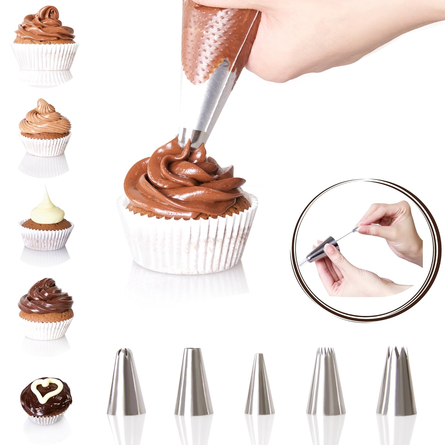 • The CAKE DECORATING TIPS – Icing Tips and FREE Cleaning Brush Set – 5 Large Popular Stainless Steel Icing Tips - Better size than XL - for easy cupcake decorating is a