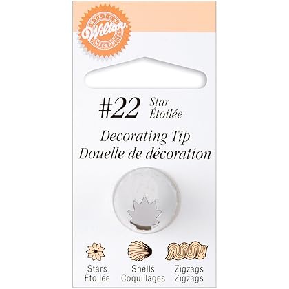 5) A staple for any kitchen! Whether you bake regularly or just for special occasions, these disposable decorating bags are tool you should have on hand. Also makes a thoughtful gift!Decorating Tip-#22 Star is best for youWilton-Decorating tip. These icing tips simply screw onto Wilton decorating icing pouches or tubes and make it easy for you to create great looking designs on your cakes in minutes. This package contains one decorating tip made of nickel-plated brass. Dishwasher safe. Comes in a variety of styles. Each sold separately. Imported.