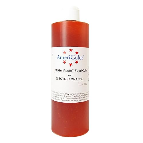 • The ELECTRIC ORANGE 13.5 Ounce Soft Gel Paste Food Color is a