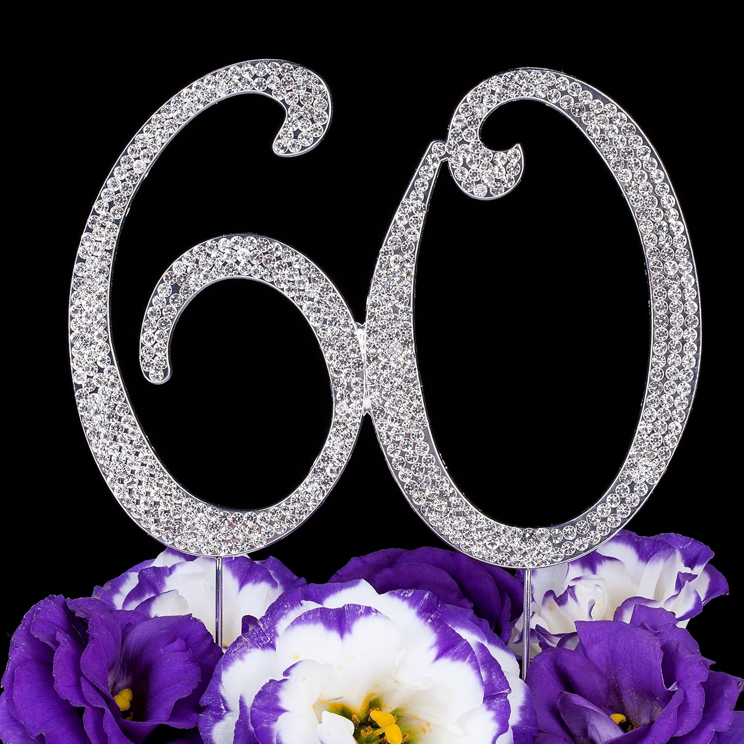 • The LOVENJOY with Gift Box Number 60th Happy Birthday Crystal Rhinestone Metal Cake Decoration Topper, Large Size is a