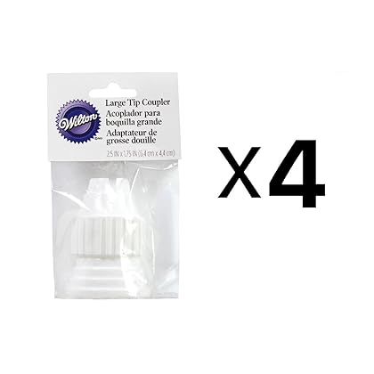 5) A staple for any kitchen! Whether you bake regularly or just for special occasions, these disposable decorating bags are tool you should have on hand. Also makes a thoughtful gift!Wilton Large Cake Decorating Tip Coupler New White Plastic Large Coupler(4-Pack) is best for youLarge Coupler. White plastic coupler specifically for use with large decorating and filling tips. This package contains one coupler base and one ring.