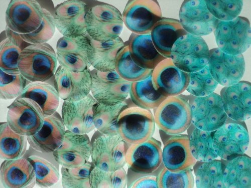 • The 48 round very small 1" Assorted Green Edible Decorative Wafer Paper Peacock Feathers © Wedding Cake Cupcake Toppers is a