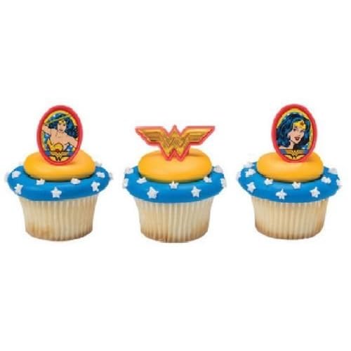 • The CakeDrake WONDER WOMAN WonderWoman (24) Plastic Cupcake Cake Party Favors RINGS is a