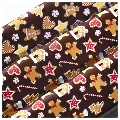 5) A staple for any kitchen! Whether you bake regularly or just for special occasions, these disposable decorating bags are tool you should have on hand. Also makes a thoughtful gift!Chocolate Transfer Sheet: Gingerbread. 1 Sheet Per Pack. Size: 16" X 10" is best for youEach sheet 16 inches x 10 inches Create exquisite chocolate pieces or desserts with these chocolate transfer sheets Use with magnetic chocolate molds, or to decorate cakes and pastries Simply spread melted chocolate on sheet Works on all kinds of chocolate and any color Can be cut into strips and shaped Can be used as a band around a cake or pastry The possibilities are endless Certified K kosher by Rabbi Schlesinger of Strasbourg, France