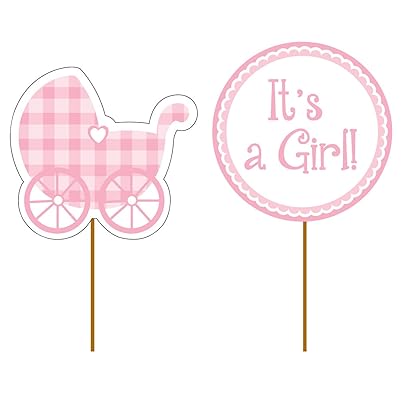 • The Creative Converting 93229 12 Count Baby Girl Gingham Decorative Cupcake Picks, Pink is a