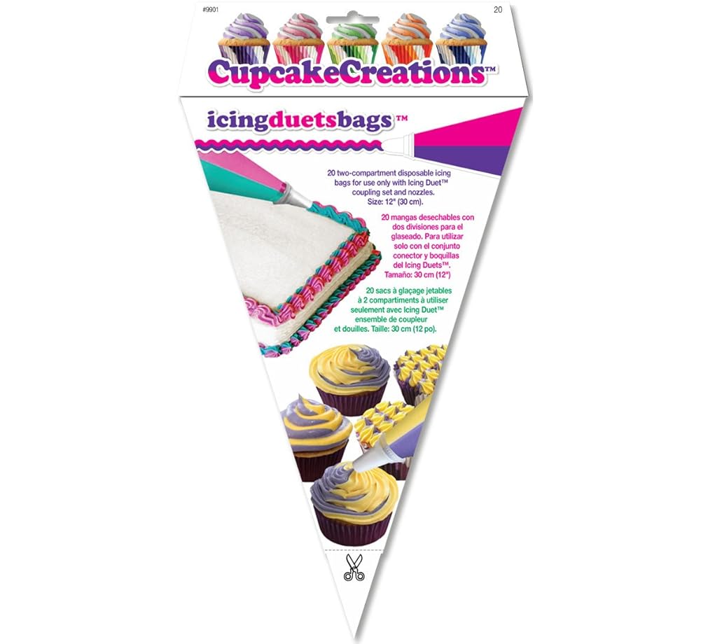 • The Cupcake Creations Disposable Duet Icing Bags, 12-Inch, 20-Pack is a