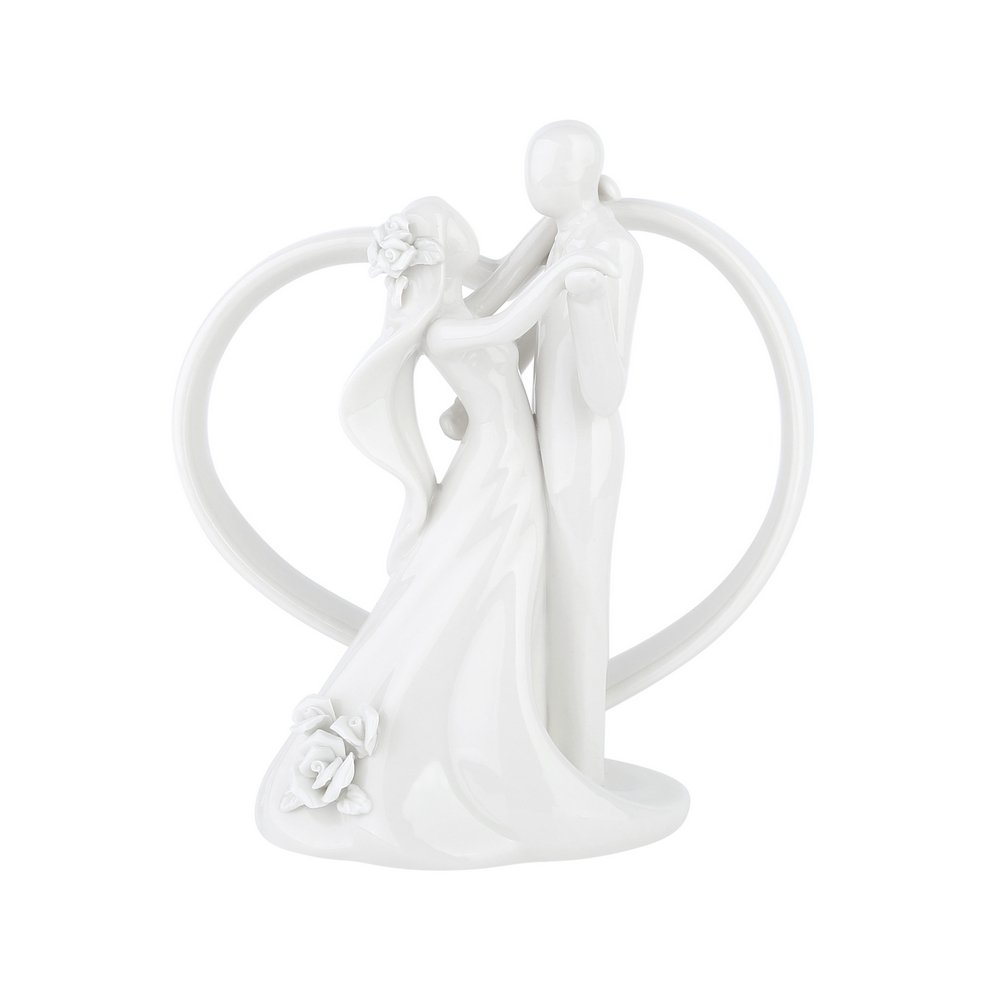 • The Febou Wedding Couple Cake Topper, Wedding Accessories Heart Arch and Dancing Couple Cake Topper, White Glazed Porcelain Couple Wedding Cake Topper for Wedding, Anniversary, Party and More is a