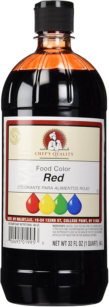 • The Liquid Red Food Color 32 OZ (1 Quart) is a