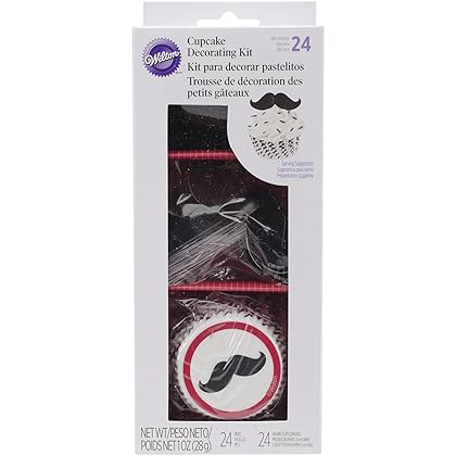 • The Wilton 415-2532 24 Count Mustache Cupcake Decorating Kit, Assorted is a
