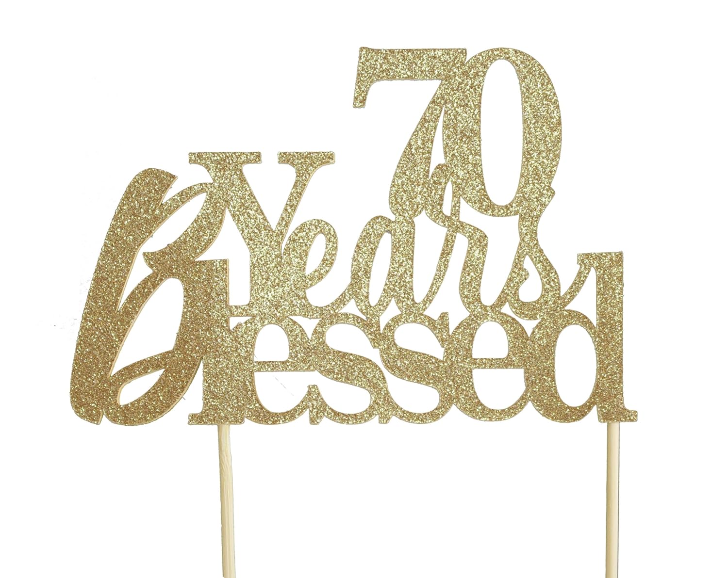 • The All About Details Gold 70-Years-Blessed Cake Topper is a