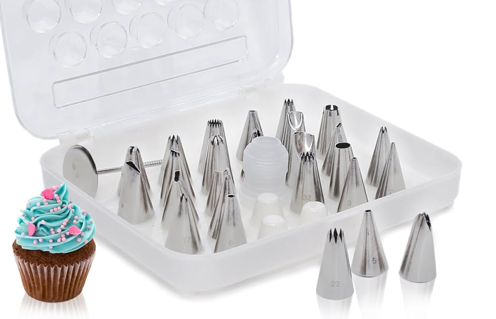 • The Best Cake Decorating Kit by Baking Partners - White - Professional 26 Piece Numbered Piping Tip Set - Comes With Re-Usable Coupler and Flower Nail. Includes Free Picture Guide for Each Nozzle is a