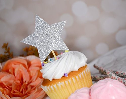 • The DOOXOO Silver Glitter Stars Cake Topper - Twinkle Twinkle Little Star, Birthday, Baby Shower, Wedding Cake Decoration, Star Cake Topper Set of 24 is a
