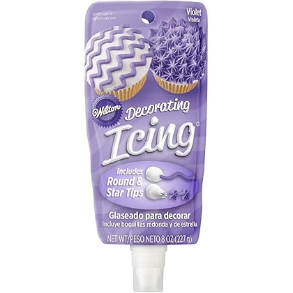 5) A staple for any kitchen! Whether you bake regularly or just for special occasions, these disposable decorating bags are tool you should have on hand. Also makes a thoughtful gift!Wilton 704-0056 Purple Icing Pouch with Tips is best for youSkip mixing the perfect shade. Just pick up this ready-to-use Purple Icing Pouch with Tips. Squeezable, easy-to-hold decorating bags fit comfortably in your hand for the control of regular bag and tip without the prep or mess. The built-in coupler comes with two decorating tips. Easily switch between the versatile round and star tips as you decorate. Create outlines, lettering, dots, balls, beads and more using the round tip. Decorate with stars, rosettes, and more using the star tip. Plus, because it comes with a built-in coupler, you can attach any standard Wilton tip to switch up your technique even more. Net weight: 8 oz. (227 g).
