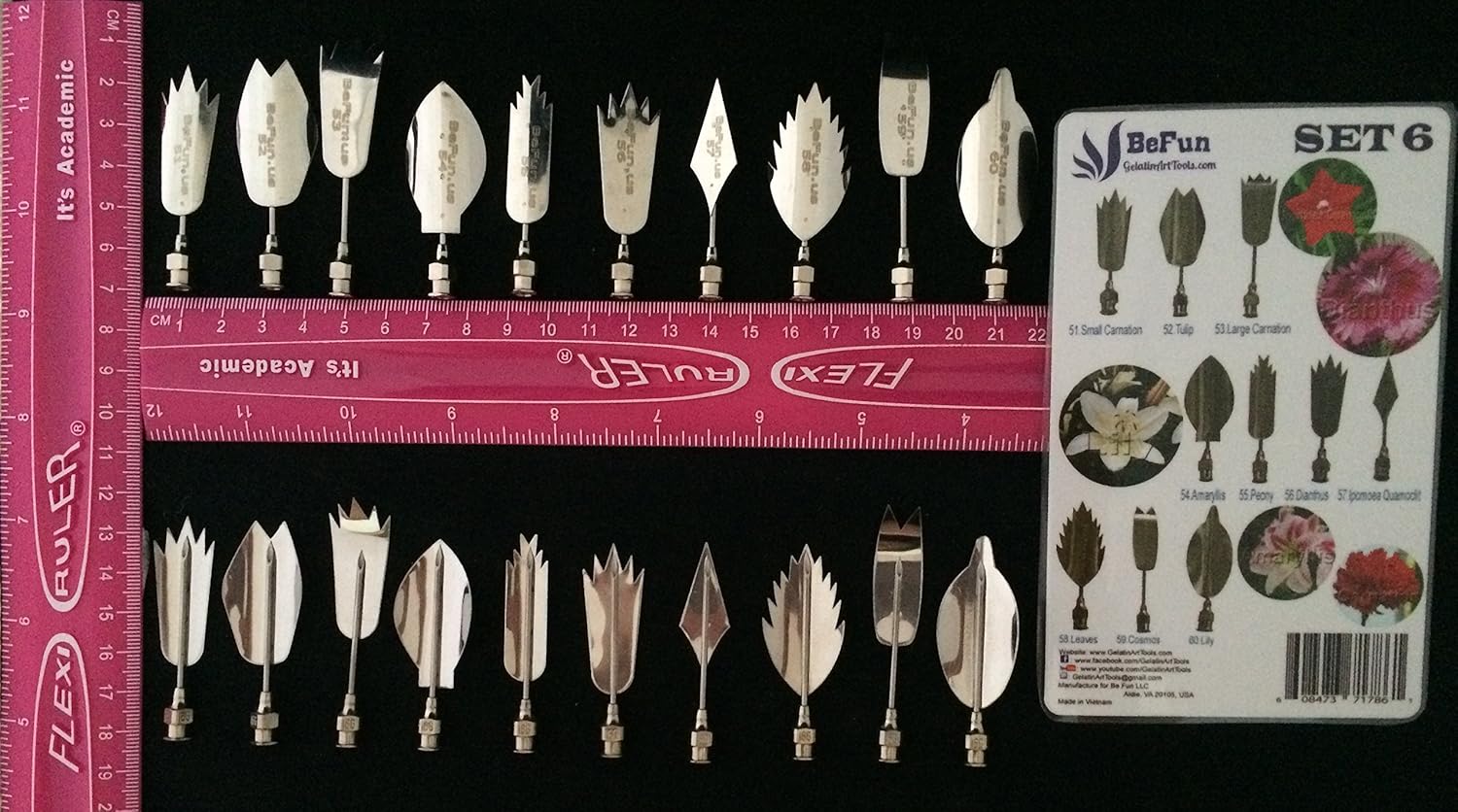 • The BeFun # 6 Cake Decorating Supplies for 3D Gelatin Art Tools–Jello Shots -Jelly Cake- Set 10 pcs for Beginners and Professionals with Serial Number & 2 Syringes is a