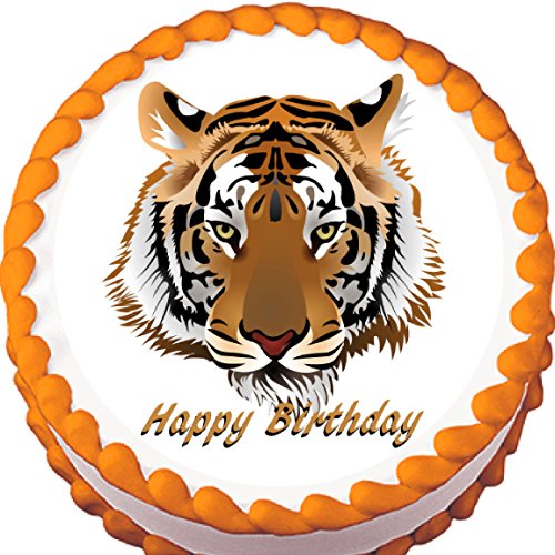Tiger Edible Cake Topper is best for youThe topper is 7.5' round and perfectly fits an 8' to 10' round cake as well as a quarter sheet cake. Requires no expertise to apply - just peel and place! Application and storage instructions are included. Can be saved in original unopened package for up to one year however it is recommended to use within three months of purchase.