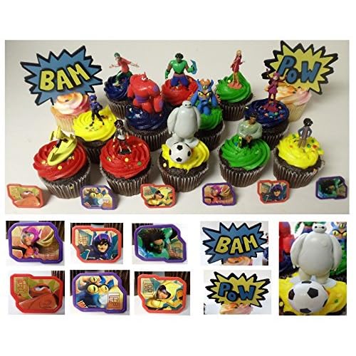 Big Hero 6 Deluxe 21 Piece Cupcake Topper Set Featuring 6 Big Hero Party Cake Rings, Soccer Ball, Bam & Pow Signs, and 2" Figures of Hiro Hamada, Baymax, Go Go Tomago, Honey Lemon, Wasabi and Fred - Includes Each in Their Super Hero Battle Suits is best for youBig Hero 6 Deluxe 21 Piece Cupcake Topper Set Featuring 6 Big Hero Party Cake Rings, Soccer Ball, Bam & Pow Signs, and 2' Figures of Hiro Hamada, Baymax, Go Go Tomago, Honey Lemon, Wasabi and Fred - Includes Each in Their Super Hero Battle Suits