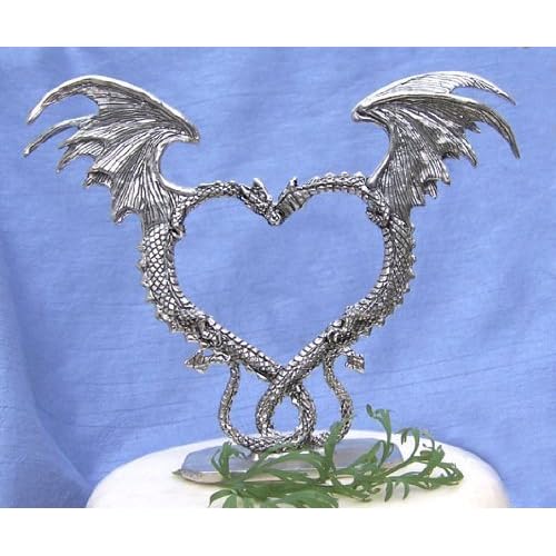 Dragon Heart Cake Topper is best for youName: Dragon Heart Cake Topper These two dragons are nuzzeling, their tails entwine, and the space between them forms a heart. We designed this to top a wedding cake, but it makes a wonderful sculpture as well. (On a cake, the base will be covered with frosting or flowers.) We make it by hand from lead-free pewter and it is 7 1/2 inches across from wing tip to tip. This item is often used as wedding cake topper but can be used for any other special occasion. Size: 6' H x 7.5' W Item Number: FF-X258 Made in the USA! Product Line: Fellowship Founddry Pewter Wedding Cake Topper