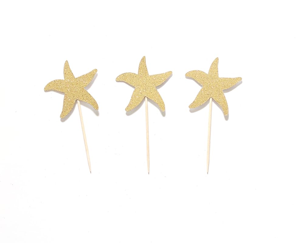 12 Glitter Starfish Cupcake Toppers - Any Color best Decorating Tools