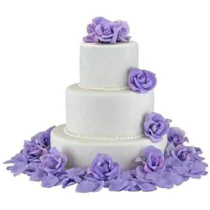 Lavender Silk Rose Cake Flowers - Reception Decoration is best for youBeautiful, natural-looking roses and petals to decorate your wedding cake. This versatile cake flower set comes with 12 open rose heads and 200 matching rose petals. You can sprinkle the petals all over the table or just cluster them around your cake as we did in the photo. The rose heads measure approximately 3 inches across and you will receive 12 of them to use as you need. The silk rose petals measure approximately 1 1/2 inches diameter and you will receive about 200 of them. These flowers and petals match exactly with the other products in this color scheme. Lavender Silk Rose Cake Flowers.These silk flowers are an exact match to all of the items in the Lavender Silk Rose Collection from TheBridesBouquet.comLavender Silk Rose Cake Flowers - Reception Decoration