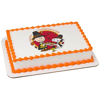 Peanuts Snoopy Happy Thanksgiving Licensed Edible Cake Topper #37091 is best for youAs Easy as Pulling off backing and placing on cake. I can Personalize The 1/4 sheet topper only. Please leave a message in the Gift Message Section When Purchasing or message me as soon as purchased. No returns are Excepted on Personalized or Edible Products.