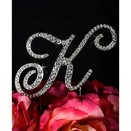 Unik Occasions Victorian Crystal Rhinestone Wedding Cake Topper, Large, Letter K, Silver is best for youPersonalize your wedding cake with our glamorous Victorian-styled cake toppers! encrusted in glittering rhinestones, these exquisite cake toppers accent any wedding cake beautifully with their elegant cursive style. You can also accent the top of a cupcake tower cake or a birthday cake for the special little princess in your life. The height of large letters is about 4.75' And small - 2.75'.