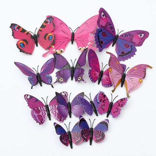 12Pcs Art Decal Girls Home Room Wall Stickers 3D Butterfly Decorations Decors Color: Purple is best for you