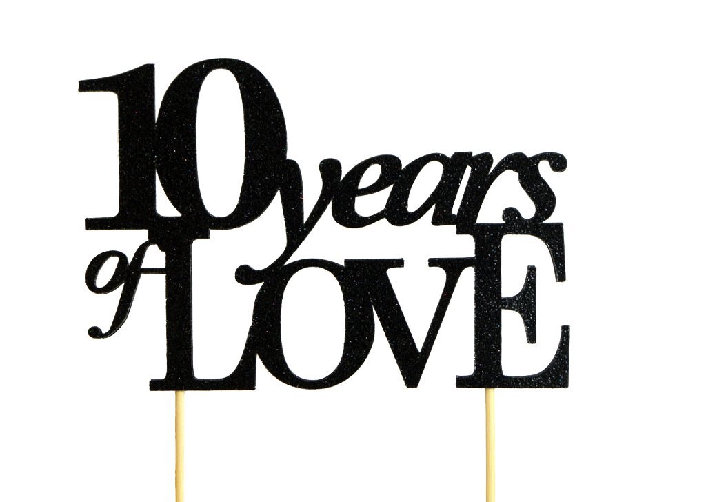 Black 10 Years of Love Cake Topper best Decorating Tools