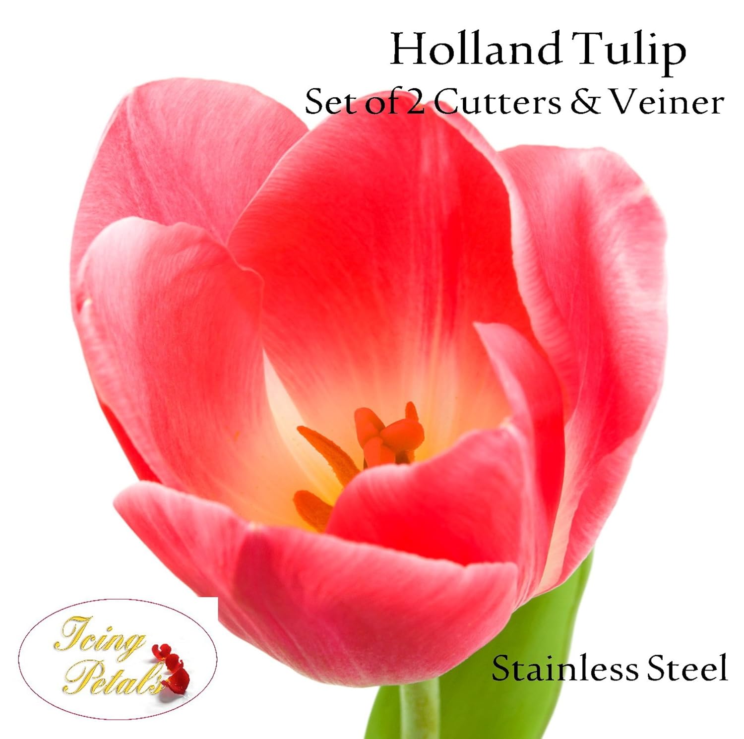 Holland Tulip Petal Cutters & Veiner Set/4 By Icing Petals is best for youSet Contains: 2 stainless steel petal cutters and a pair of silicone petal veiners. Finished flower measures approx. 1 1/2'H to 2 1/2' H. Will remain sharp.. 'NOT COOKIE CUTTERS'.
