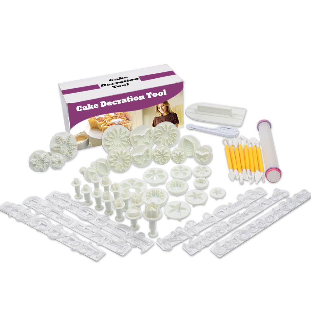 • The 14 Set 53pcs Fondant Cake Molds with Roller Smoother Letter Cutters is a