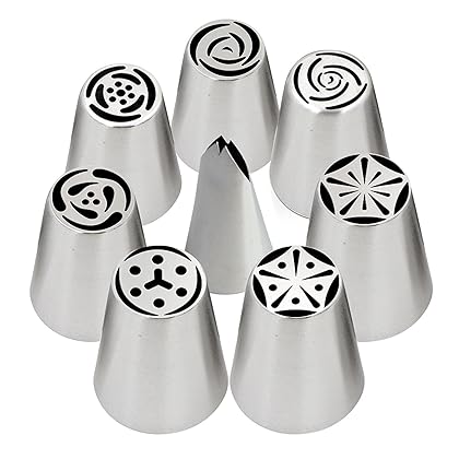 • The 8 Tools Set - TOP QUALITY - Russian Piping Tips Icing Nozzles - For Cakes or Cupcakes Decoration - Make Flowers and Leaves is a