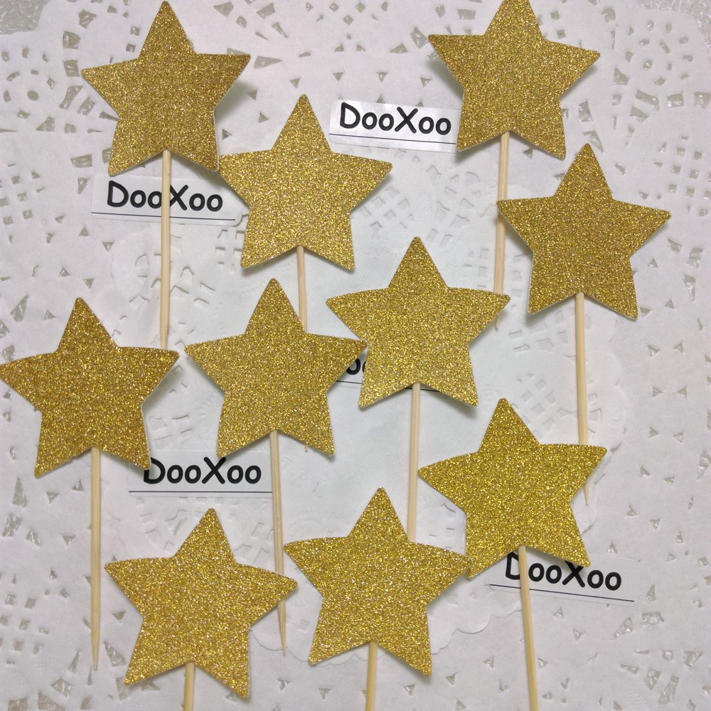 • The DOOXOO Twinkle Twinkle Little Star Cupcake Toppers Twinkle Star Birthday Star Cupcake Toppers Star Baby Shower Cupcake Toppers Gold Star Toppers Set of 24 is a