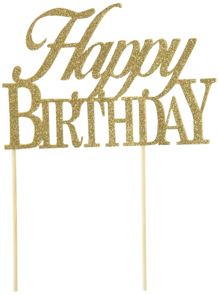 • The All About Details Gold Happy-birthday Cake Topper is a