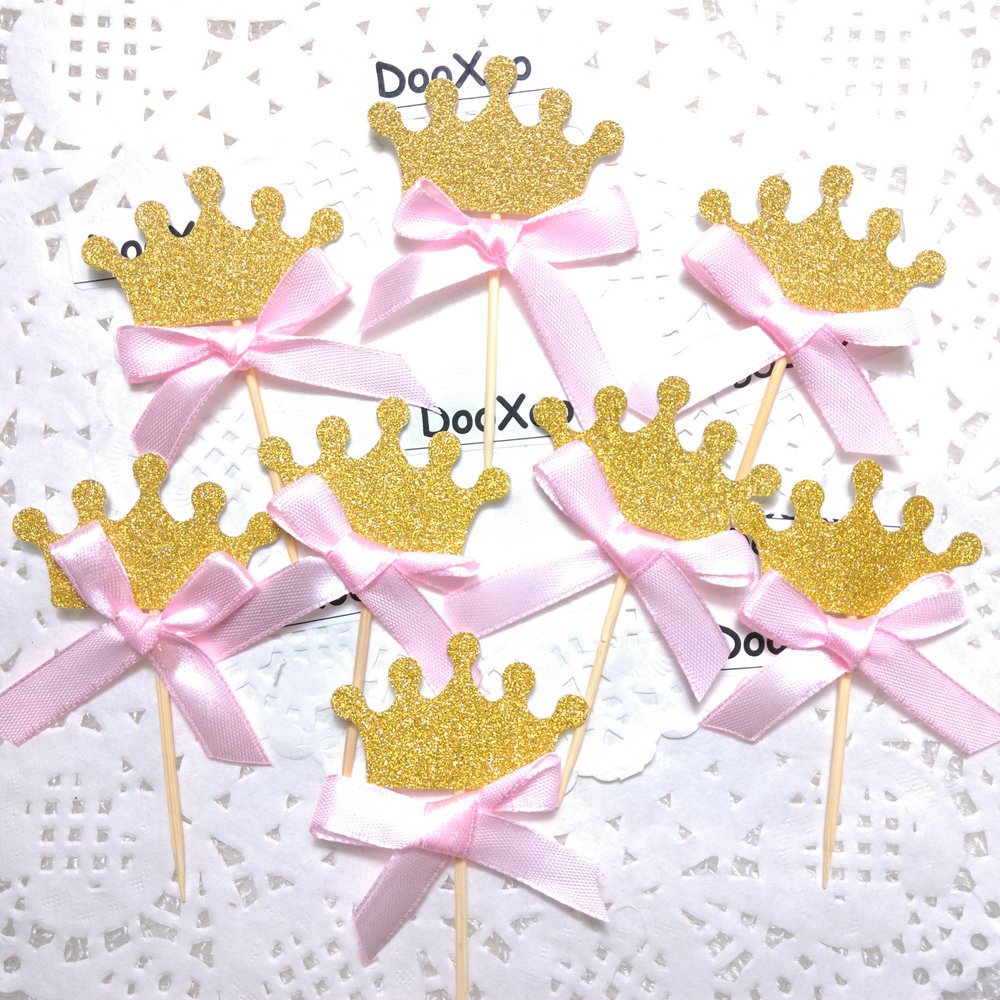 • The DOOXOO Gold glitter crown cupcake topper with pink bow. 1st birthday, princes, prince, custom number cupcake topper, birthday cupcake topper is a