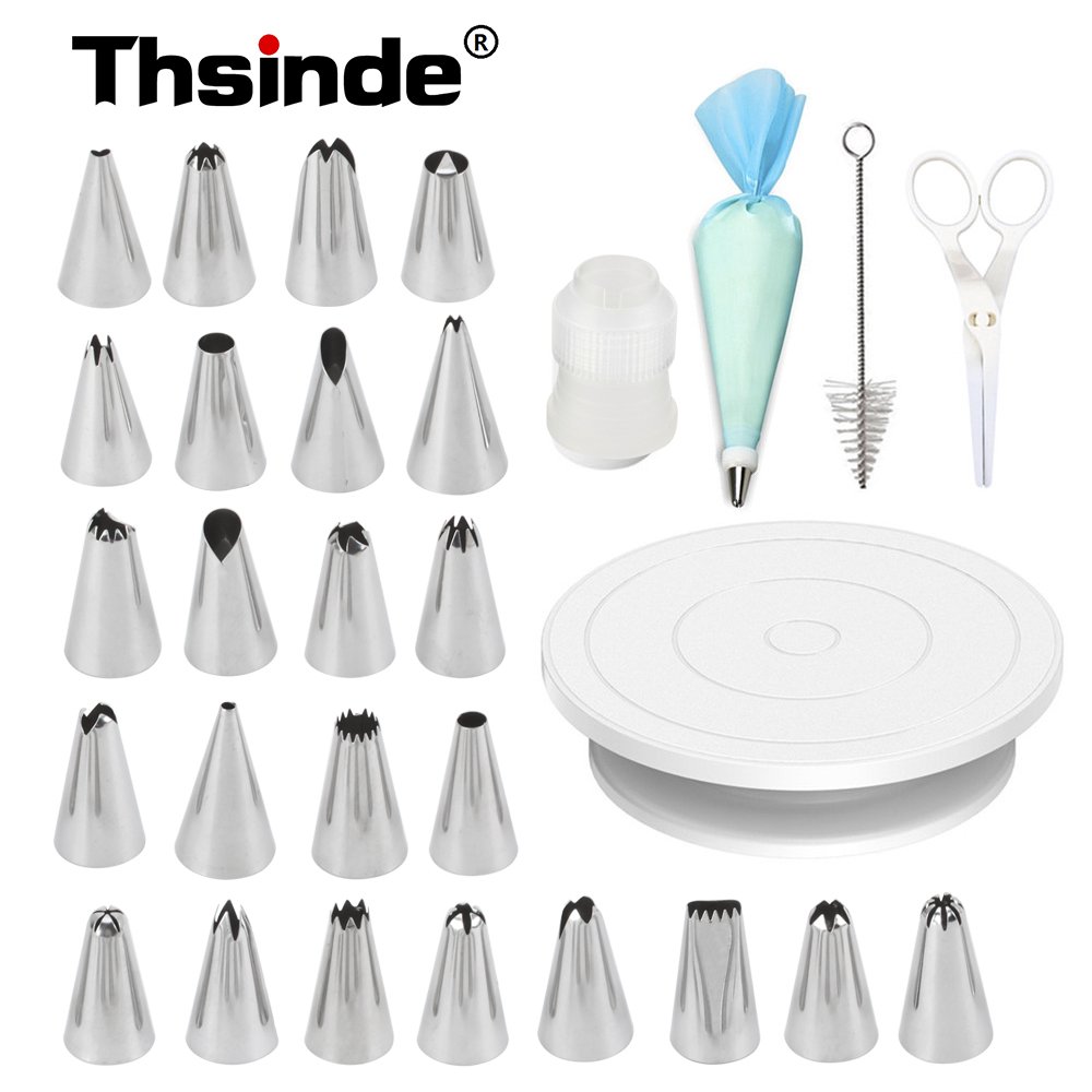 Why Use Thsinde 29 Pcs Cake Decorating Supplies Tip with Turncake Turntable Rotating Cake Stand and Stainless Steel Icing Tip and Cake Brush and Cutter ?