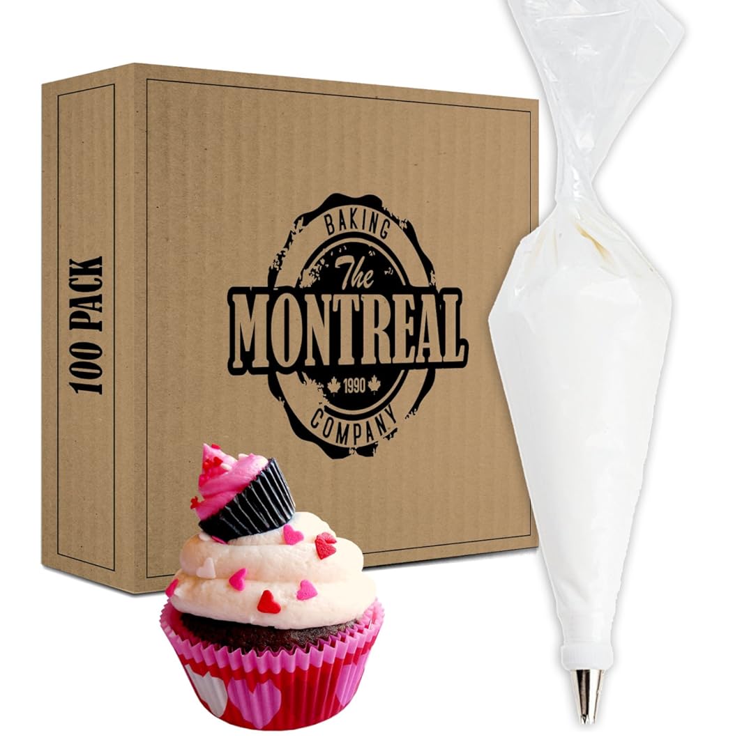 • The Montreal Baking 14 Inch 100-Pack Disposable Piping Bags for Cake Decorating is a