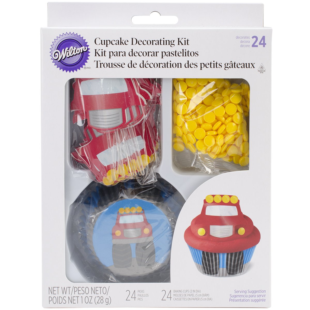 • The Wilton 415-2195 48 Count Fire Truck Cupcake Decorating Kit is a